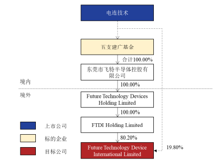 然后,电连技术再收购飞特半导体的股权,以及FTDI另一股东Stoneyford持有的19.8%的股权。