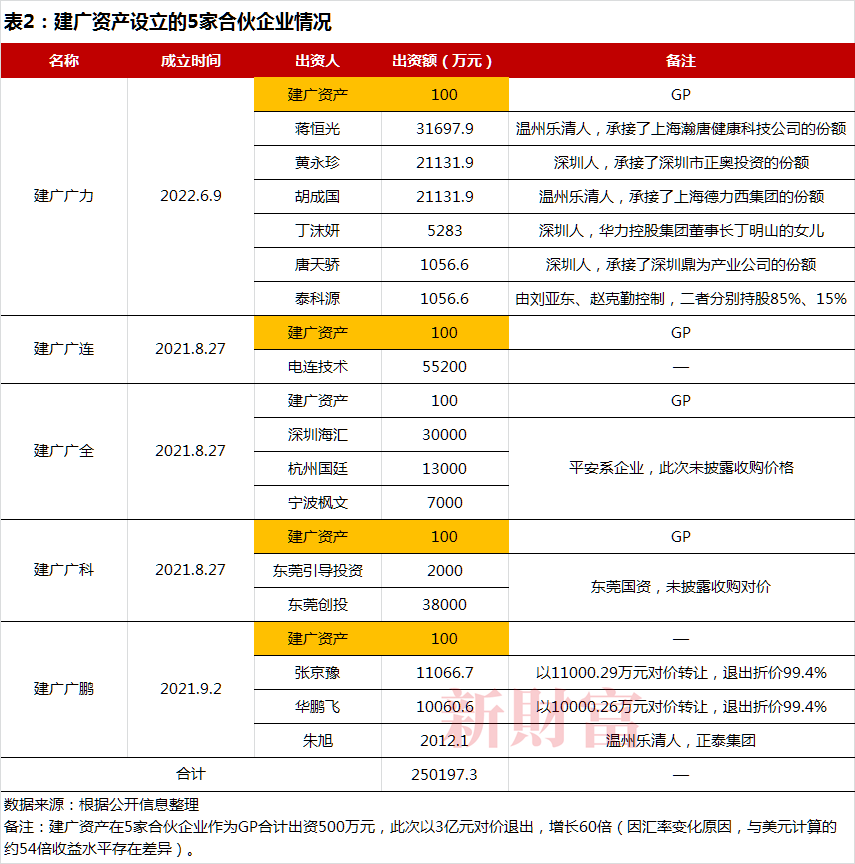 这场并购交易共有18名参与者。除电连技术外,17家转让方分别是由建广资产牵头设立的5家合伙企业的16位合伙人和1家境外股东。