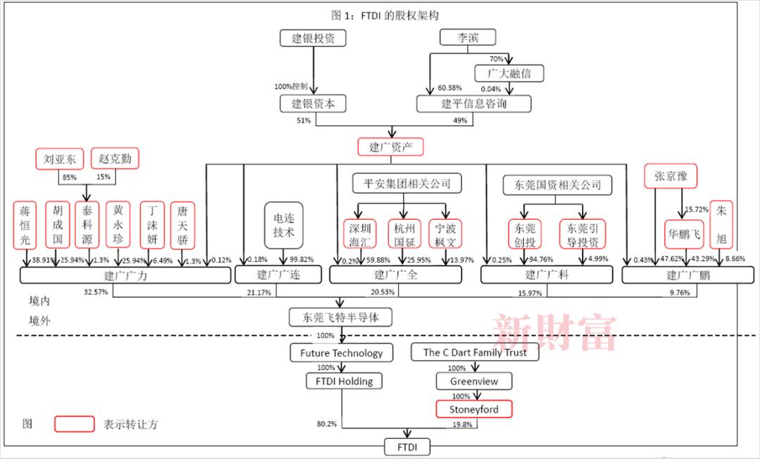 3类投资人在建广资产的“穿针引线”下,聚集在一起,被建广资产“分门别类”安排建广广力、建广广全、建广广科、建广广鹏等4个平台,出资19.5亿元共同成立东莞飞特半导体,完成了对FTDI80.2%股权的收购。此时则摇身一变,由买方转变为卖方出售FTDI。