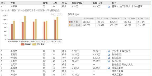 值得注意的是,电连技术的董事长陈育宣在2024年获得了151.4万元的薪酬,较上年增长了11%。据公开资料显示,陈育宣拥有丰富的行业经验,从模具钳工起步,历经多个职位,最终成为电连技术的董事长。他与电连技术的董事陈旭东为父子关系。陈旭东自2018年起在多个子公司和部门担任要职,并于2025年2月成为电连技术的董事。