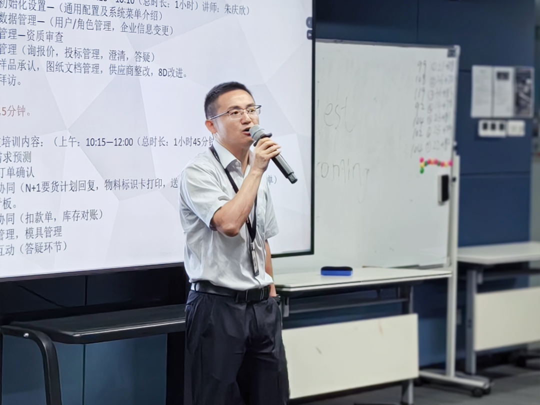 培训开场由英搏尔采购部经理颜青松致辞。他深入阐述了公司引入SRM系统的战略背景: