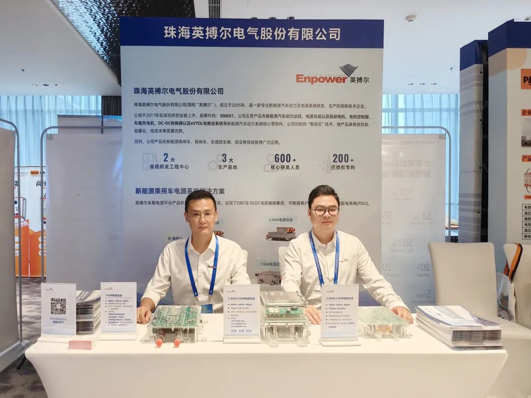 除了精彩的技术演讲,英搏尔在会议期间设立了专业展台,全方位展示了其最新的电源系统解决方案。方案涵盖了全新一代6.6kW、11kW等车载充电机,及单体3kW、6kWDC-DC产品。展台吸引了大量与会者驻足交流,技术团队现场与行业同仁就产品性能、技术细节及应用场景进行了深入的沟通与探讨。