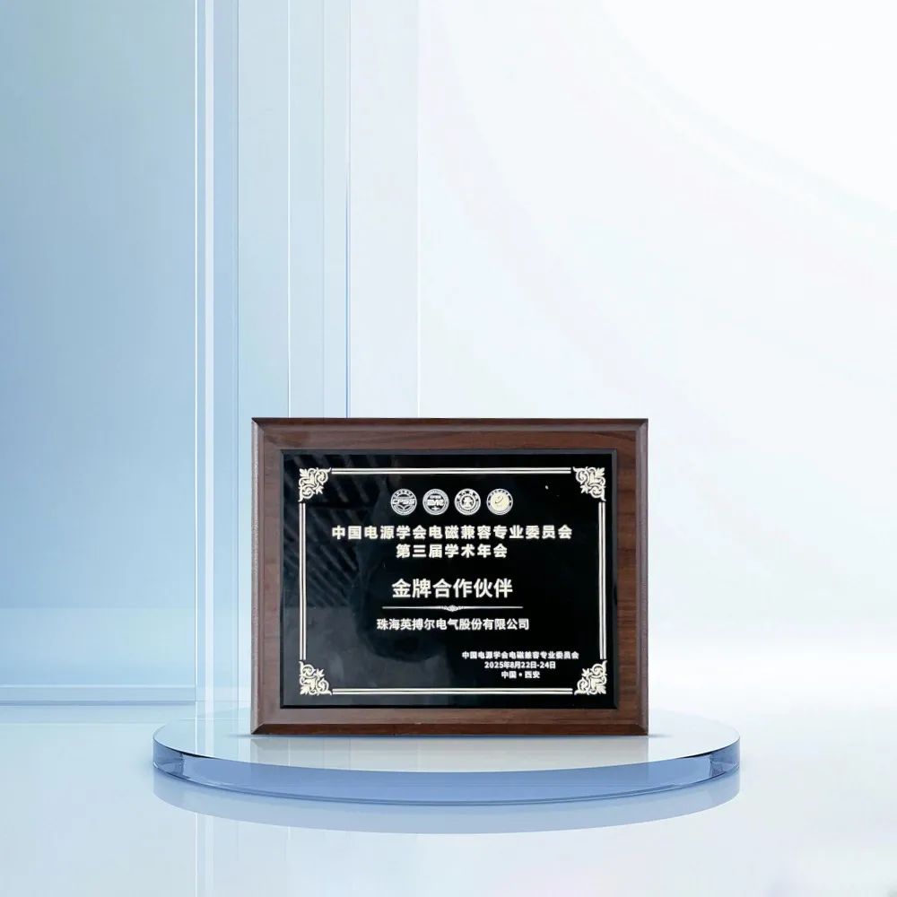 在颁奖晚宴上,英搏尔被中国电源学会电磁兼容专业委员会正式授予"金牌合作伙伴"奖牌。这一荣誉不仅是对英搏尔长期以来在电磁兼容技术领域持续创新和突出贡献的充分肯定,更是对其在新能源汽车三电系统EMC技术研发方面领先地位的认可。该奖项体现了行业权威机构对英搏尔技术实力和产业贡献的高度评价。