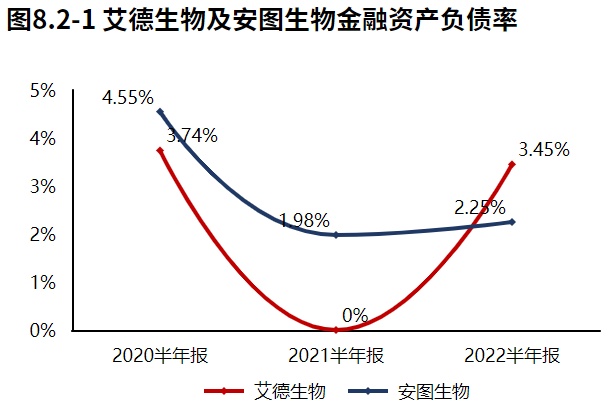 艾德生物有新增贷款,金融负债水平提高,非必要融资产生的财务费用将对公司效益产生不必要的冲击。2022年06月30日艾德生物金融负债率3.45%,较2021年06月30日提高3.45个百分点,金融负债水平提高。艾德生物主要为非必要融资,其产生的财务费用将对公司效益产生不必要的冲击。