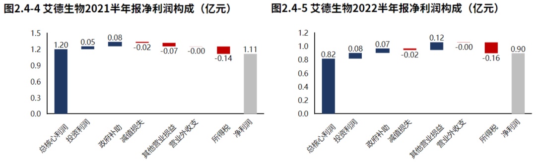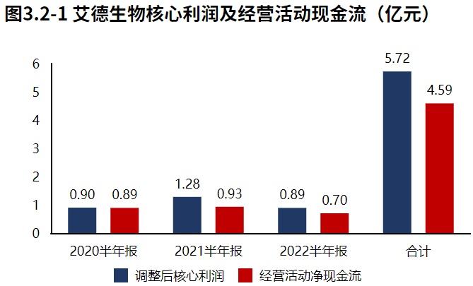 经营活动产生的核心利润为利润的核心支柱,同时也是因为核心利润的减少导致了净利润的减少。艾德生物2022半年报净利润0.9亿元,利润主要来源于经营活动产生的核心利润。2022半年经营活动产生的核心利润较去年同期减少0.38亿元,净利润的减少主要是因为经营活动产生的核心利润的减少。