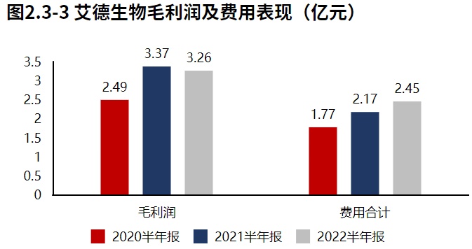 艾德生物毛利润2022年上半年较2021年同期减少0.11亿元,费用增加0.28亿元,产品盈利增长减少的同时费用支出却还在增加。