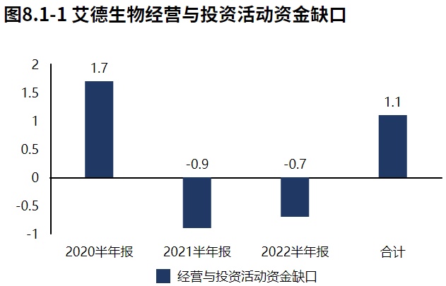 经营活动与投资活动资金缺口持续缩小。2022半年报艾德生物经营活动与投资活动资金净流入0.73亿元,无资金缺口。2020年报到本期经营活动与投资活动累计资金缺口1.06亿元。