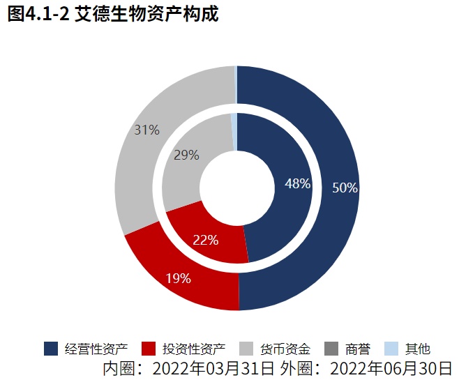 经营资产占比不高。从2022年06月30日的合并报表的资产结构来看,经营资产占比50%,货币资金占比31%。