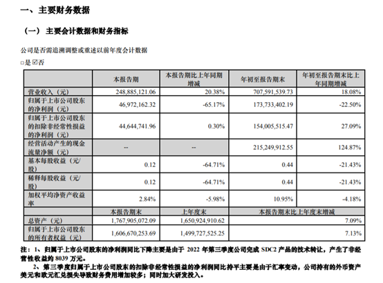尤其是在刚刚发布的三季度财报,第三季度公司实现营收2.49亿元,同比增长20.38%,但是净利润只有0.47亿元,同比下降超过65.17%。
