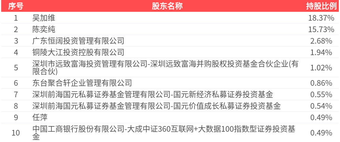 公司股东户数为2.18万户,前十大股东持股数量为1.11亿股,占总股本比例为42.67%,前十大股东持股情况如下: