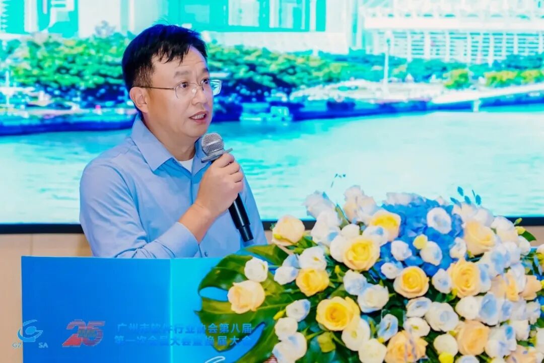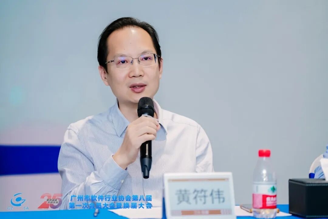 在理事会上,广州市工业和信息化局黄符伟副局长发表致辞,对大会的成功召开和新当选的协会领导班子表示热烈祝贺。黄局充分肯定了软件产业对广州经济社会发展的重要贡献以及协会发挥的桥梁纽带作用,并对协会未来工作提出殷切希望:一是要在服务发展大局上体现更高站位,引导企业赋能实体经济;二是要在增强核心动能上实现更大突破,聚力攻克关键核心技术;三是要在优化产业生态上发挥更强作用,构建健康有序的发展环境。黄局表示,主管部门将一如既往地支持协会工作,为广州软件产业高质量发展保驾护航。