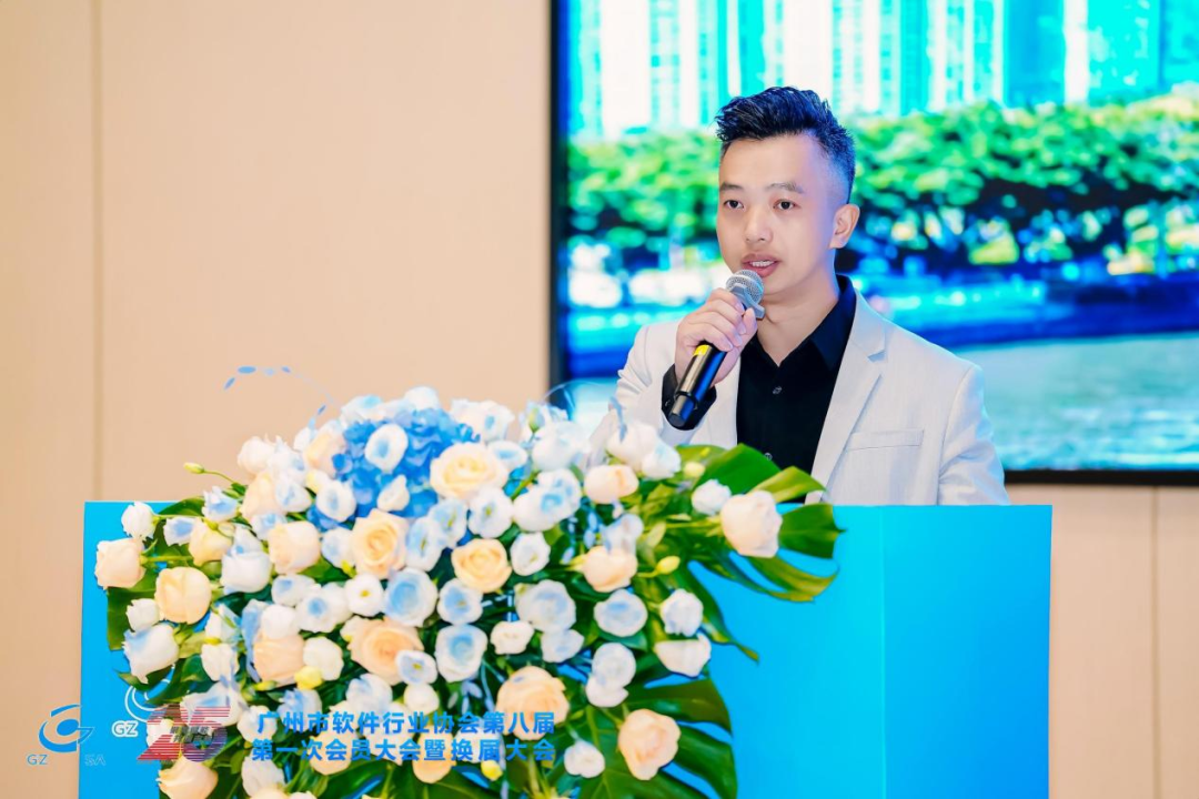 在与会代表的热烈掌声中,新当选会长张成康发表了就职讲话。他首先对梁建华会长及上一届理事会的卓越贡献表示崇高敬意和诚挚感谢。张会长表示,接过协会发展的“接力棒”,深感责任重大、使命光荣。面对新形势、新机遇,新一届理事会将恪守服务宗旨,重点在三方面发力:一是强化精准服务,做会员单位发展的“助推器”;二是聚焦前沿创新,做好产业能级跃升的“催化剂”;三是构建开放生态,做广州软件品牌的“传播者”。他呼吁全体会员携手共进,共同开创广州软件产业更加辉煌的明天。