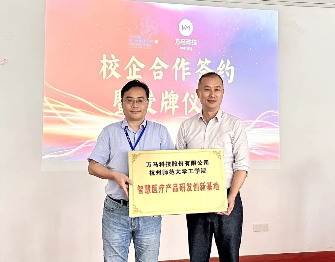 5月19日下午,杭州师范大学工学院与万马科技校企合作签约暨授牌仪式在公司顺利举行。杭州师范大学工学院执行院长周斌、党总支副书记丁放、学生创业导师沈伟、工业设计系主任陈嘉林、机械设计制造及自动化系主任袁鸿斌;万马科技临安片区总经理朱正翔、副总经理朱青芳、医疗产品营销中心副总经理王仁敏等人一同出席签约仪式,共同见证重要时刻。