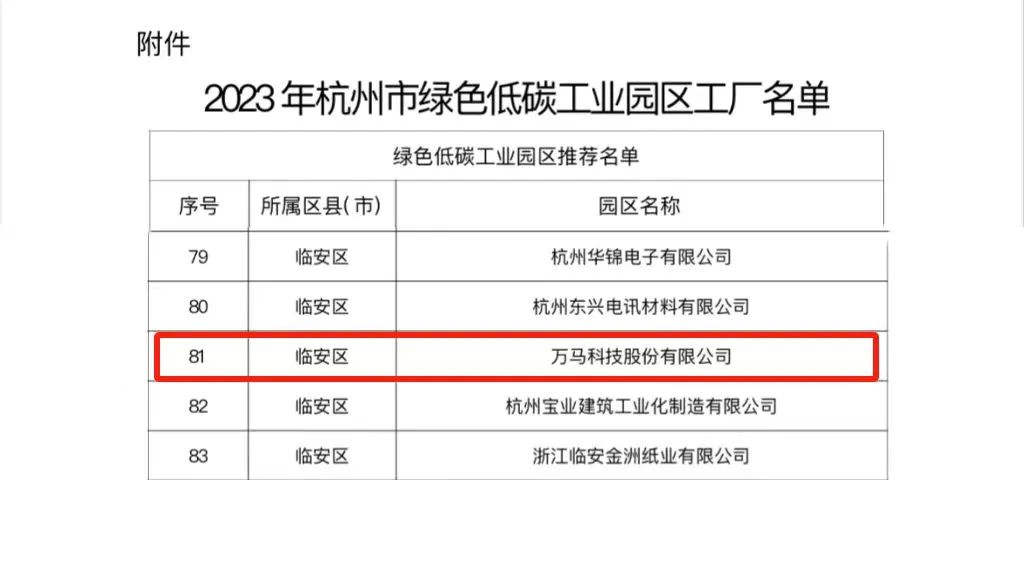 近日,杭州市经济和信息化局公布2023年度市级绿色低碳工业园区工厂认定名单。公司成功上榜2023年杭州市绿色低碳工业园区工厂名单。