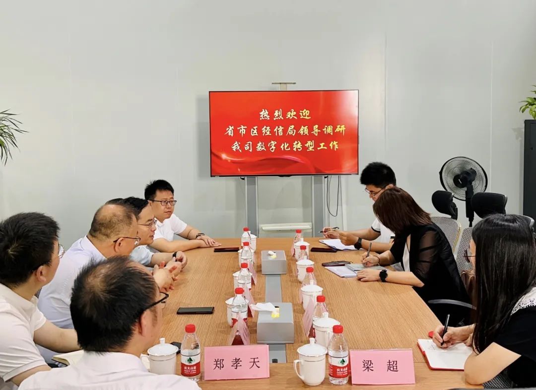 6月14日上午,省经信厅产业数字化推进处处长张君、市经信局产业数字化推进处处长方浩、市经信局产业数字化推进处副处长梁超、临安区经信局党委委员副局长叶亮等一行莅临万马科技,开展中小企业数字化转型城市试点工作情况调研,深入考察并肯定了公司在数字化转型工作上的创新实践。