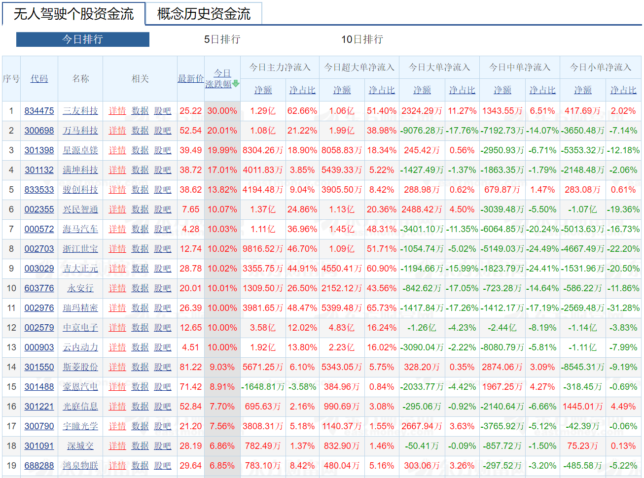 从6月24日无人驾驶概念涨停个股来看,万马科技主营通信类产品、车联网连接平台及服务、智算与智驾工具链产品及服务等;星源卓镁从事镁合金、铝合金精密压铸件和配套压铸模具;兴民智通从事汽车钢制车轮的研发、生产和销售;浙江世宝主要从事汽车转向器及其他转向系统关键零部件的研发、制造及销售;永安行主营公共自行车业务、共享出行业务;云内动力是国内主要的多缸小缸径柴油机研发与制造企业。