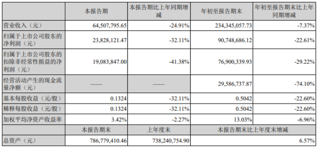 10月28日,森霸传感发布三季报称,2021年7-9月,公司实现营业收入为0.65亿元,同比下降24.91%,归属于上市公司股东的净利润为0.24亿元,同比下降32.11%。