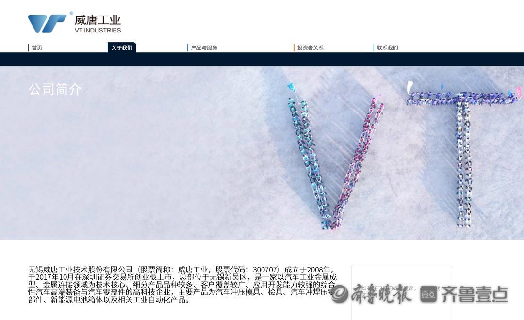威唐工业成立于2008年,于2017年10月在深圳证券交易所创业板上市,总部位于无锡新吴区,是一家以汽车工业金属成型、金属连接领域为技术核心、细分产品品种较多、客户覆盖较广、应用开发能力较强的综合性汽车高端装备与汽车零部件的高科技企业,主要产品为汽车冲压模具、检具、汽车冲焊压零部件、新能源电池箱体以及相关工业自动化产品。