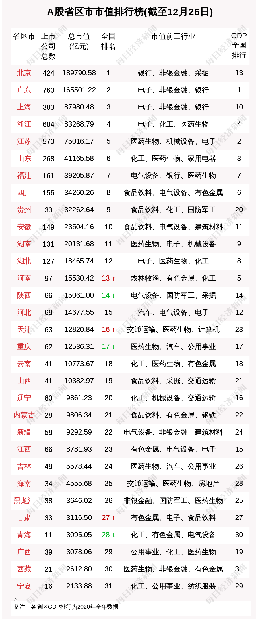 涨跌幅方面,截至2021年12月26日,江苏板块市值与前一周相比,区间涨幅为-2.17%(加权平均值),涨幅排名全国第22位。
