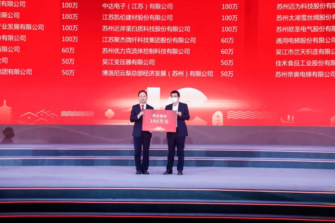 为弘扬中华民族乐善好施的传统美德,更好地营造“文明吴江、向上向善”的社会氛围,活动进行了慈善爱心企业表彰和慈善募捐。凯伦股份作为吴江区民营企业的标杆,向区慈善总会踊跃捐助善款100万元,携手25家企业,共同受表彰为“最具爱心捐赠企业”。本次活动共募集善款5794万元。