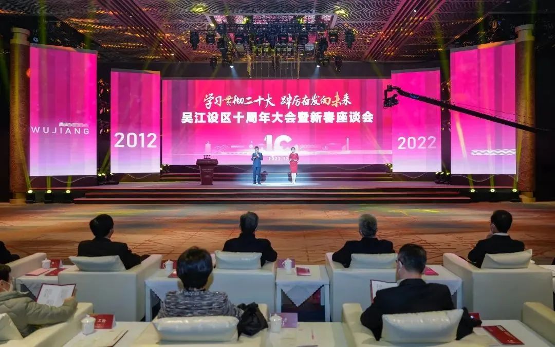12月28日,“学习贯彻二十大踔厉奋发向未来”吴江设区十周年大会暨新春座谈会举行,以党的二十大精神为指引,共话十年路、共向新未来。苏州市政协党组书记、主席朱民,常州市委副书记、政法委书记梁一波,苏州市政协原副主席徐明,区委书记李铭,区委副书记、区长王国荣,区人大常委会主任徐晓枫,区委副书记韦国岭,区委副书记、副区长王嵘等出席会议。