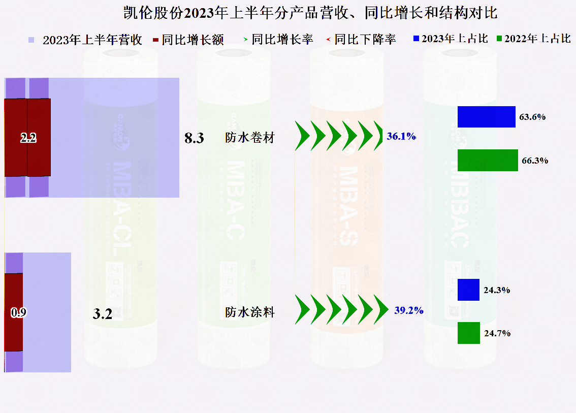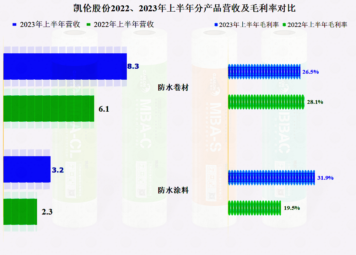 2023年上半年,凯伦股份的两大主力产品,“防水卷材”和“防水涂料”均同比增长了三成多,“防水涂料”的增长甚至接近四成,这不像是行业在下行,倒有点像是业绩大爆发的感觉。