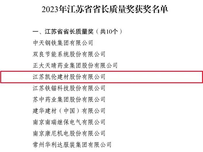 近日,江苏省省长质量奖获奖名单公布,江苏凯伦建材股份有限公司凭借持续以科技创新突破驱动产品质量变革,成功上榜,并且成为苏州唯一一个上榜的企业。