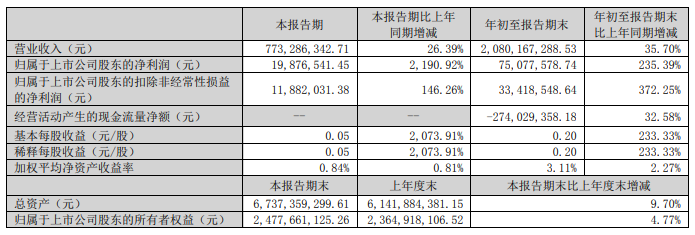 三季度净利增长超21倍