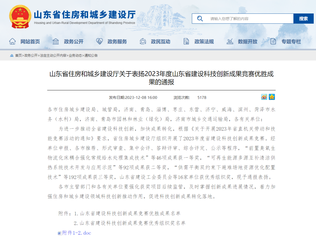 山东省建设科技创新成果竞赛是为山东省政府进一步推动全省建设科技创新,加快成果转化,由省住房城乡建设厅组织开展,经单位申报、各市推荐、形式审查、集中会评、答辩评审、综合评定、公示等程序,最终评选出优胜成果,以加强住房和城乡建设领域科技创新推动作用,促进科技创新成果转化落地。