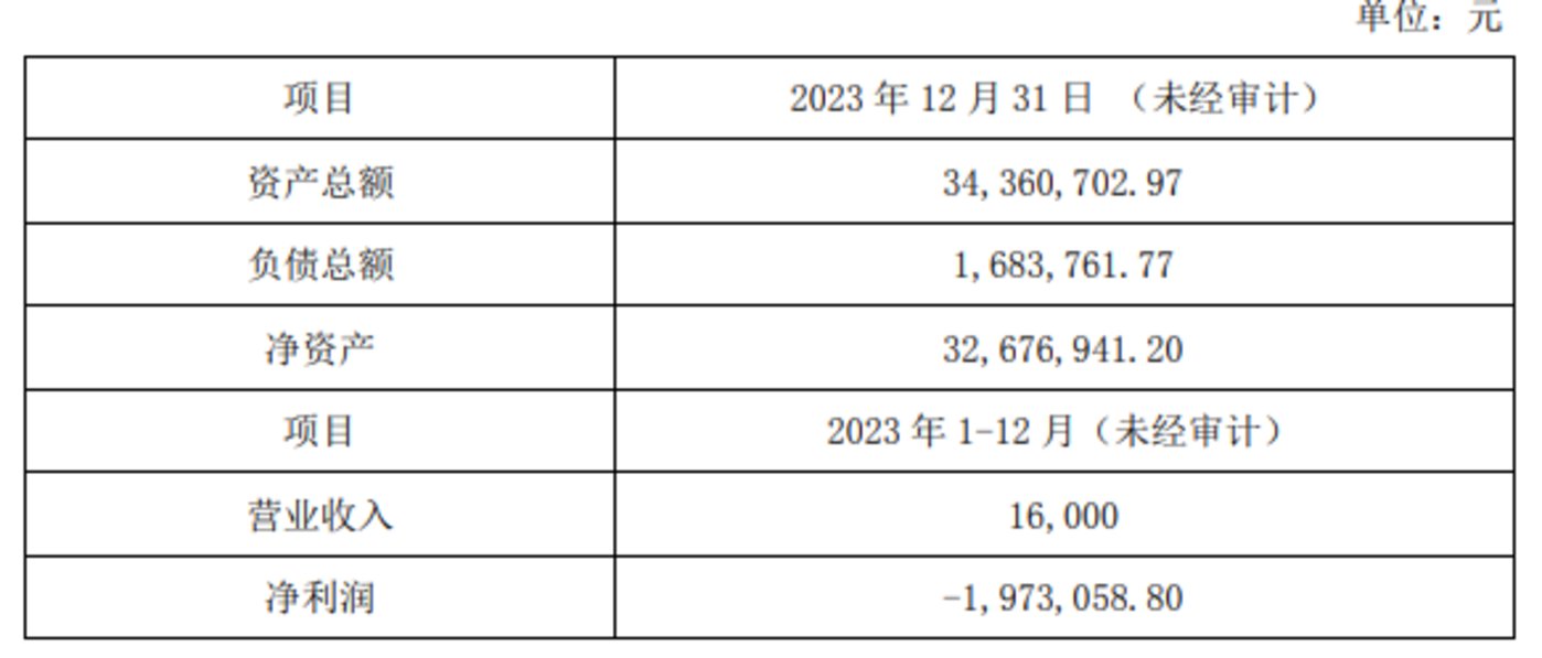 然而,成立不久的点金石科技还未实现盈利。2023年,其营业收入为1.6万元、净利润为-197.31万元。同年末,其负债总额为168.38万元,净资产仅为3267.69万元。
