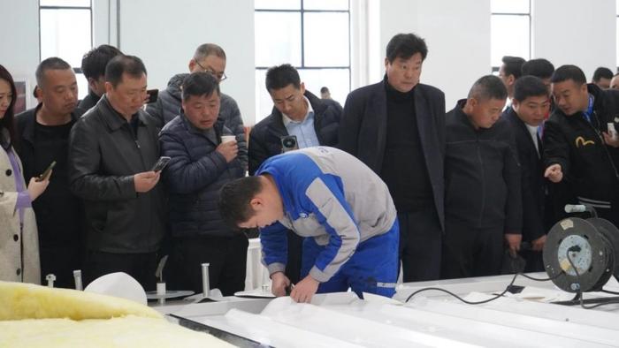 此次受邀参会的合作伙伴包括单层屋面系统承建商、规模建筑企业与大型钢结构承包商、工业屋面与地坪系统领域的经销商。为全方位了解凯伦股份面向工商业屋面领域的创新研发优势,参会人员参观了凯伦高分子产业园先进技术研究院、光伏展厅与融合瓦展厅,并在车间内现场观摩了融合瓦的施工演示,针对施工细节进行了交流探讨。