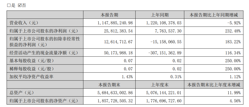 2025上半年,凯伦股份营业收入11.48亿元,同比减少5.92%;归属于上市公司股东的净利润2581.24万元,同比增长232.48%。