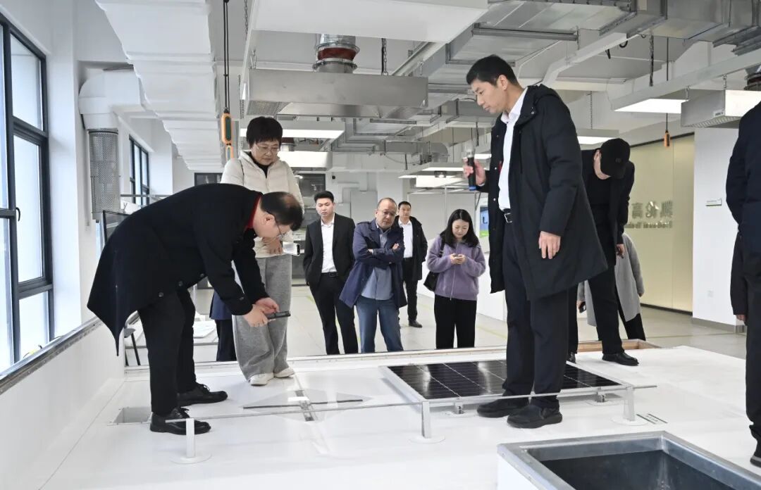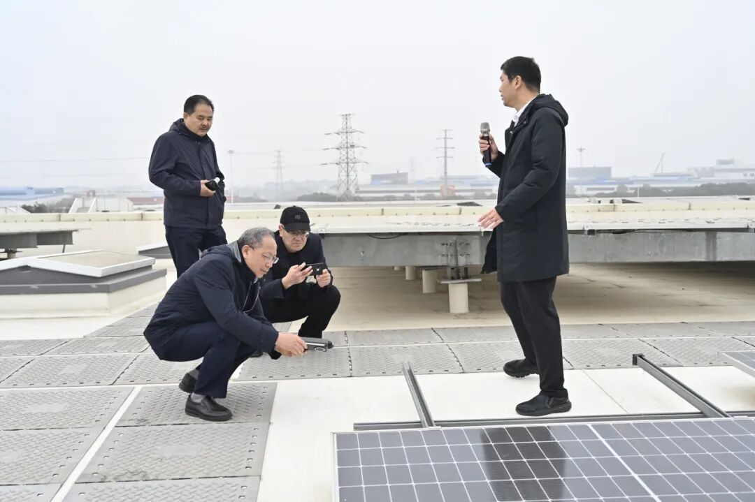 随后,观摩队伍登上凯伦高分子产业园厂房屋面,现场参观并交流立固支座的安装工艺,固定件的排布方案和光伏组件的安装方案。