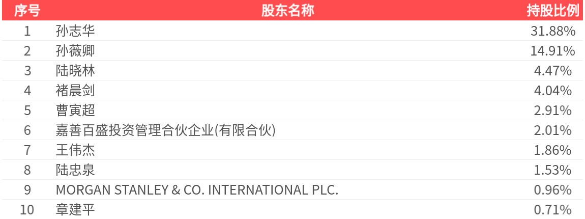 公司股东户数为3.85万户,前十大股东持股数量为1.95亿股,占总股本比例为65.28%,前十大股东持股情况如下: