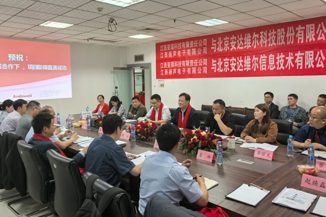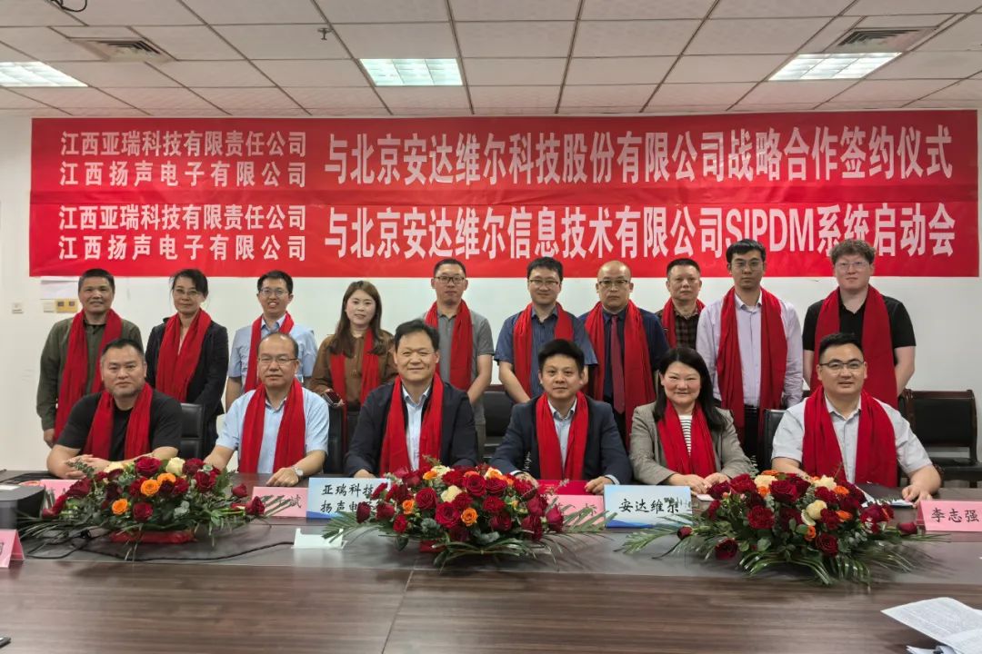 近日,北京安达维尔信息技术有限公司与江西亚瑞科技有限责任公司(以下简称“江西亚瑞”)、江西扬声电子有限公司(以下简称“扬声电子”)召开SIPDM系统项目启动会与战略合作签约仪式。