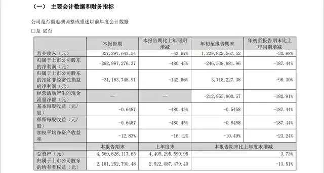 2024年第三季度,公司实现营业收入32,729.76万元,同比下降43.97%;实现归属于上市公司股东的净利润-29,299.73万元,同比下降480.43%;实现归属于上市公司股东扣非后净利润-3,116.37万元,同比下降142.86%。