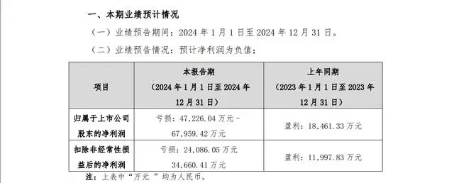一品红(300723)1月22日晚间发布2024年度业绩预告,公司预计2024年度归母净利润将亏损4.72亿元至6.8亿元,较上年同期盈利1.85亿元出现大幅下滑;扣除非经常性损益后的净利润预计亏损2.41亿元至3.47亿元,上年同期则为盈利1.2亿元。