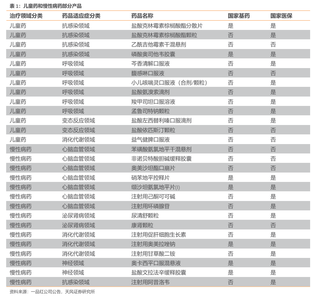 1.一品红:聚焦儿童与慢病药领域,业务覆盖全产业链