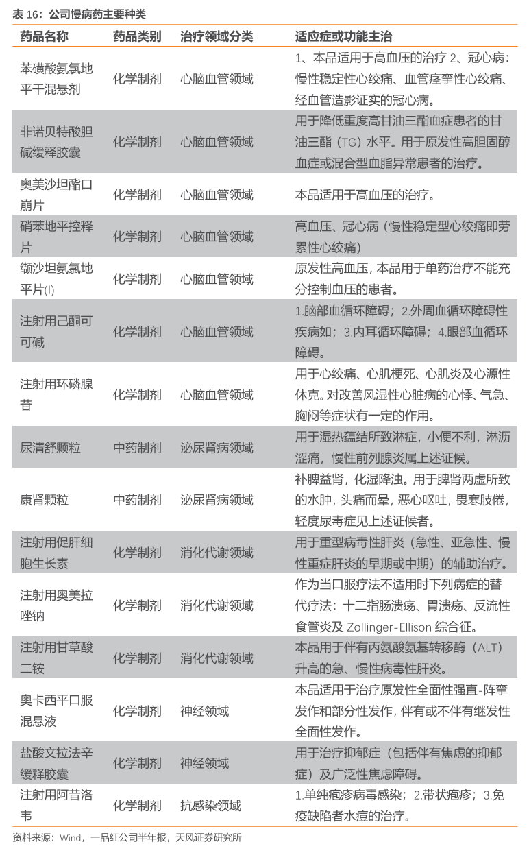 公司聚焦于儿童药和慢病药领域,产品类别涵盖化学药(含原料药和制剂)、特色中成药、生物疫苗等领域。其中,儿童药聚焦抗感染、呼吸、自免领域和消化代谢等领域,慢性病用药主要聚焦心脑血管、泌尿肾病、消化代谢等领域,特色品种包括盐酸克林霉素棕榈酸酯分散片、苯磺酸氨氯地平干混悬剂等。公司多个产品进入国家级药目录及医保目录,目前具有在研儿童专用药25项,在研慢病药包括全球创新药AR882等项目13个。