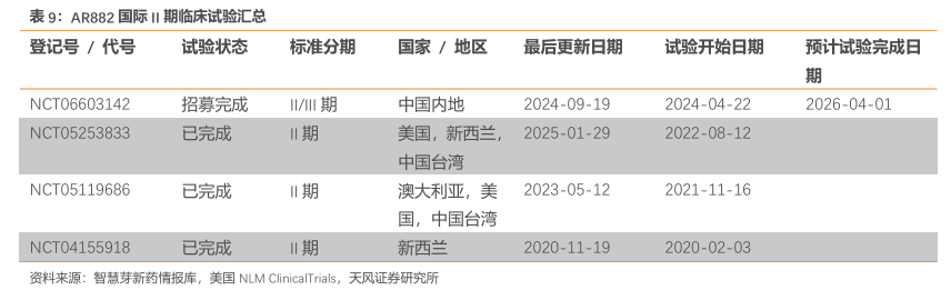 3. AR882 研发进展迅速,安全性及有效性优势显著
