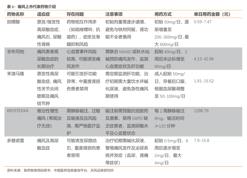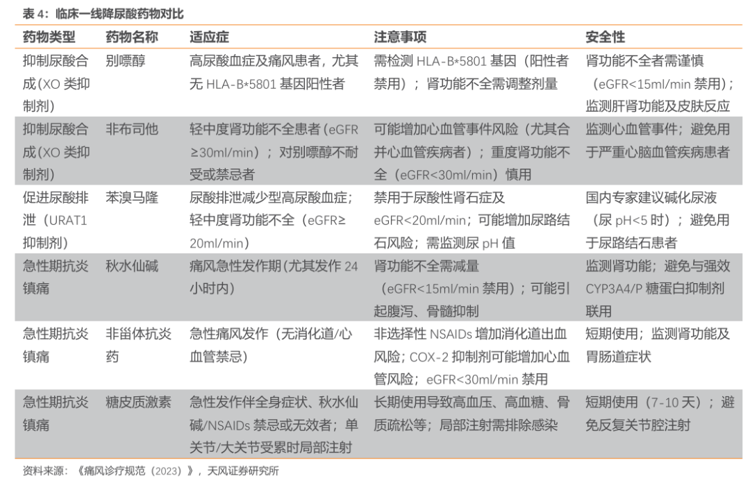 2.3.1.临床一线降尿酸药物安全性有待提升,难治性慢性痛风市场广阔