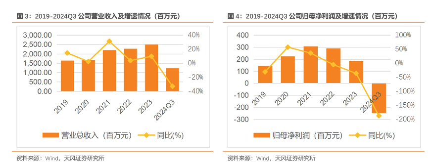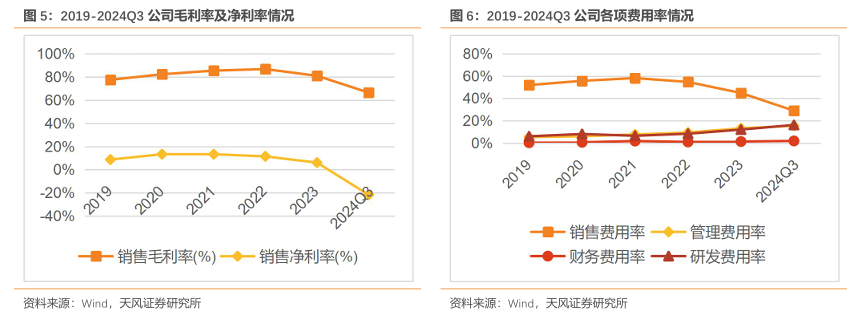 2024 年前三季度一品红营业收入、净利润有所下滑。2024年前三季度,公司实现营业收入12.40 亿元,同比下降32.98%;实现归属于上市公司股东的净利润-2.47亿元;实现归属于上市公司股东扣非后净利润371.82万元,同比大幅下滑。2024年业绩预告中,预计实现归属于上市公司股东的净利润-4.72亿元至-6.80亿元,实现归属于上市公司股东扣非后净利润-2.41亿元至-3.47亿元。2024年公司业绩有所下降,主要是受到行业政策和市场环境变化、公司联瑞生物医药智能制造基地尚属于爬坡阶段、研发投入加大和非经常性损益等因素影响。