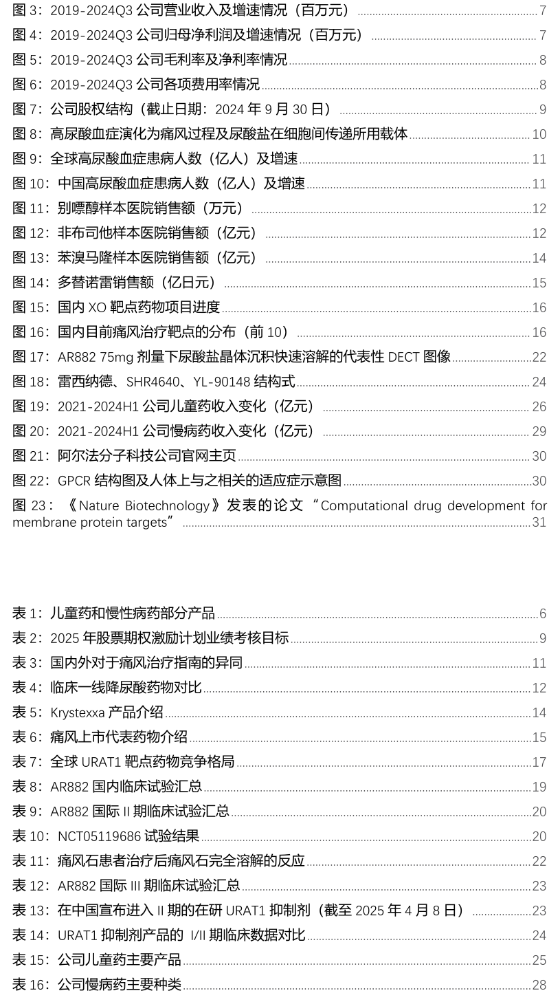 拓展创新药研发版图,聚焦痛风领域,实现与新一代URAT1抑制剂AR882的深度绑定。AR882是美国Arthrosi公司研发的痛风1类创新药。公司参股美国Arthrosi公司的股权比例为22.52%,同时,公司通过合资公司广州瑞安博获得了AR882在中国区域(含港澳台)的研发、生产及销售等权益。