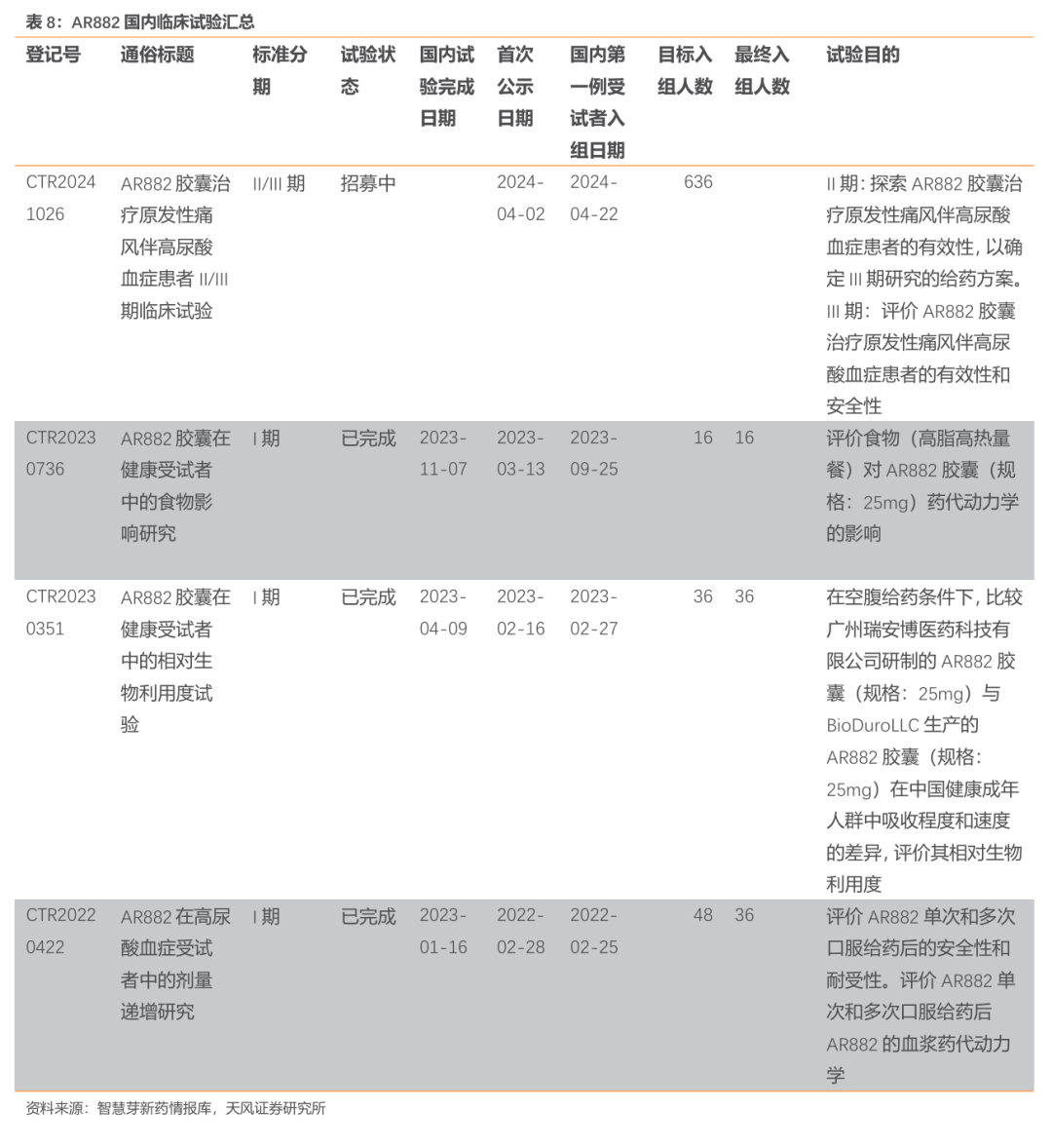 AR882:安全性+降尿酸疗效优势,有望成为best in class