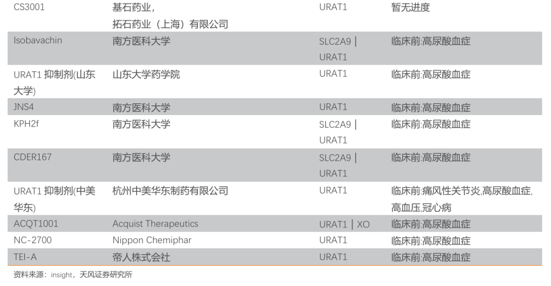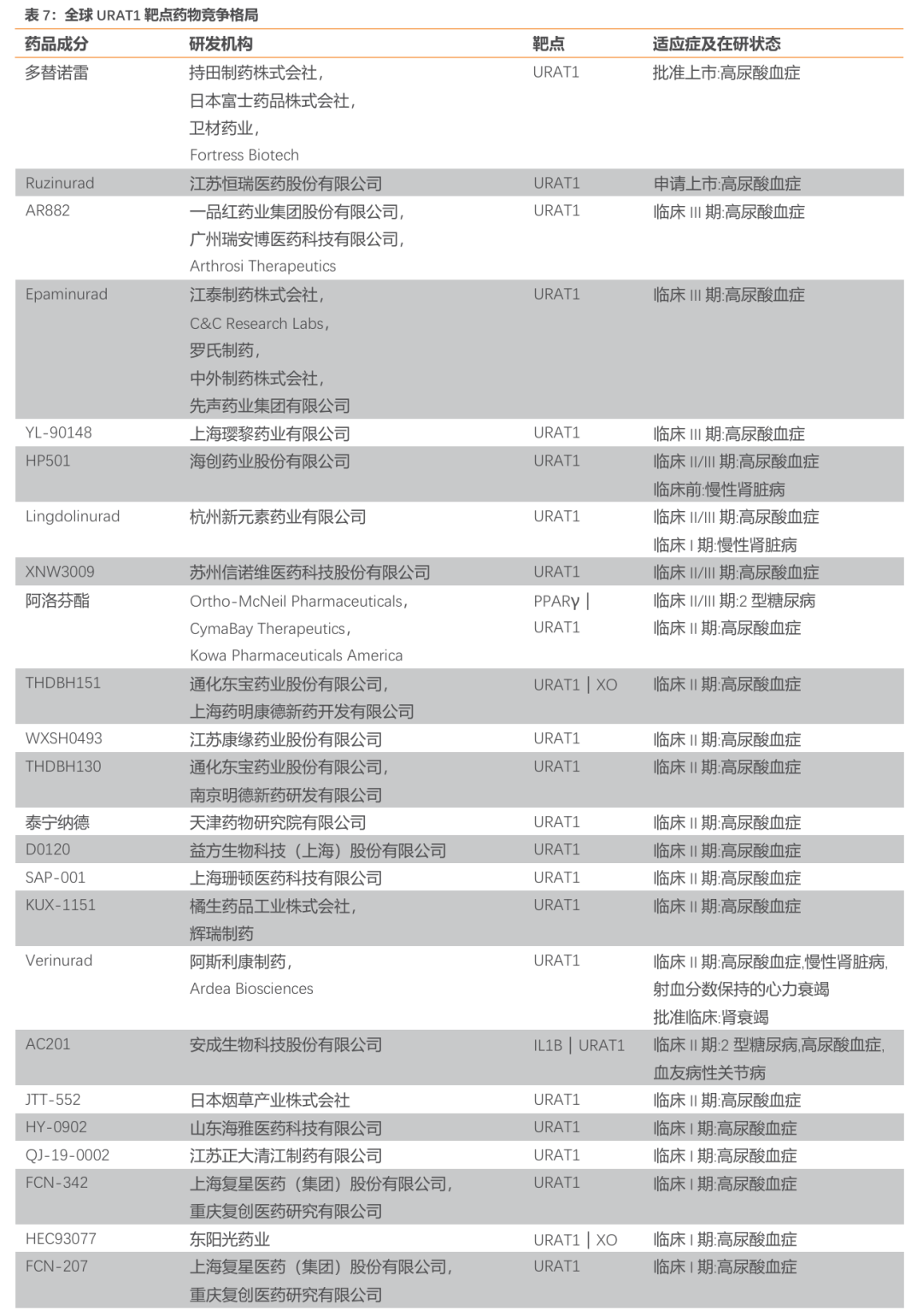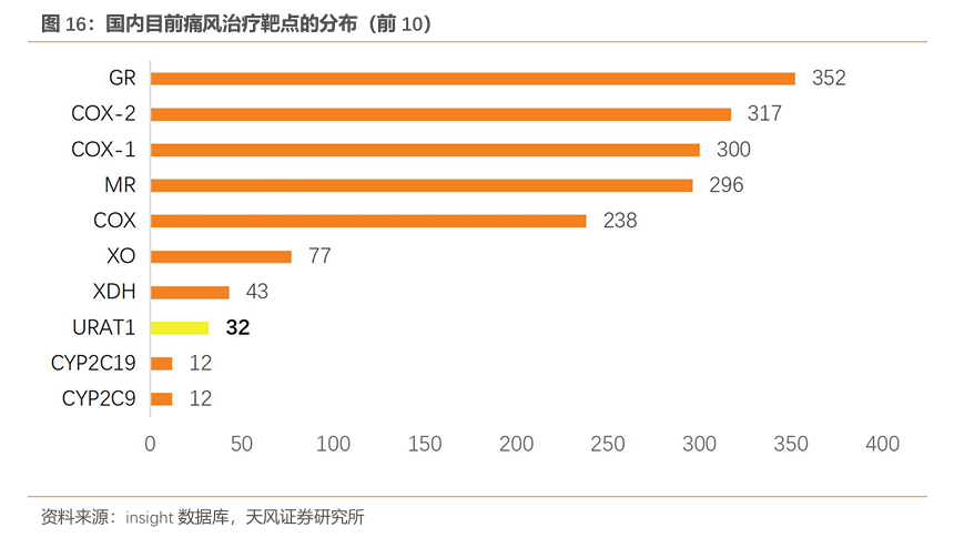 2.3.2. XO 靶点赛道布局全面,URAT1抑制剂或将成为治疗新热点