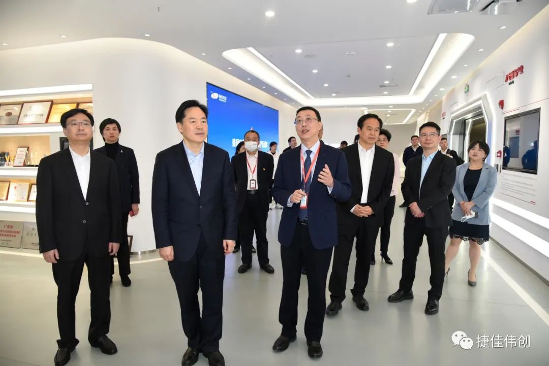 2月8日,常州市委书记陈金虎一行领导莅临深圳捷佳伟创总部走访调研,集团公司董事长余仲先生、副董事长左国军先生、副总经理金晶磊女士、行政总监彭志坚先生等领导热情接待。