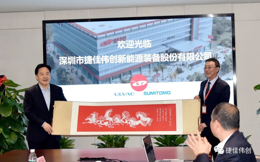 公司董事长余仲先生对陈书记等领导的支持和厚爱表示感谢,表示将抓住新能源快速发展的契机,在常州把新能源事业做大做强。最后,陈书记赠予捷佳伟创一幅气势磅礴的“八骏图”,鼓舞捷佳伟创事业前程似锦、马到功成。