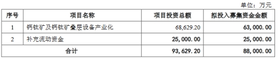 捷佳伟创2023年11月14日披露深圳市捷佳伟创新能源装备股份有限公司向不特定对象发行可转换公司债券募集说明书(修订稿),公司本次发行原拟募集资金总额不超过88,000.00万元(含88,000.00万元),扣除发行费用后,拟用于钙钛矿及钙钛矿叠层设备产业化、补充流动资金。