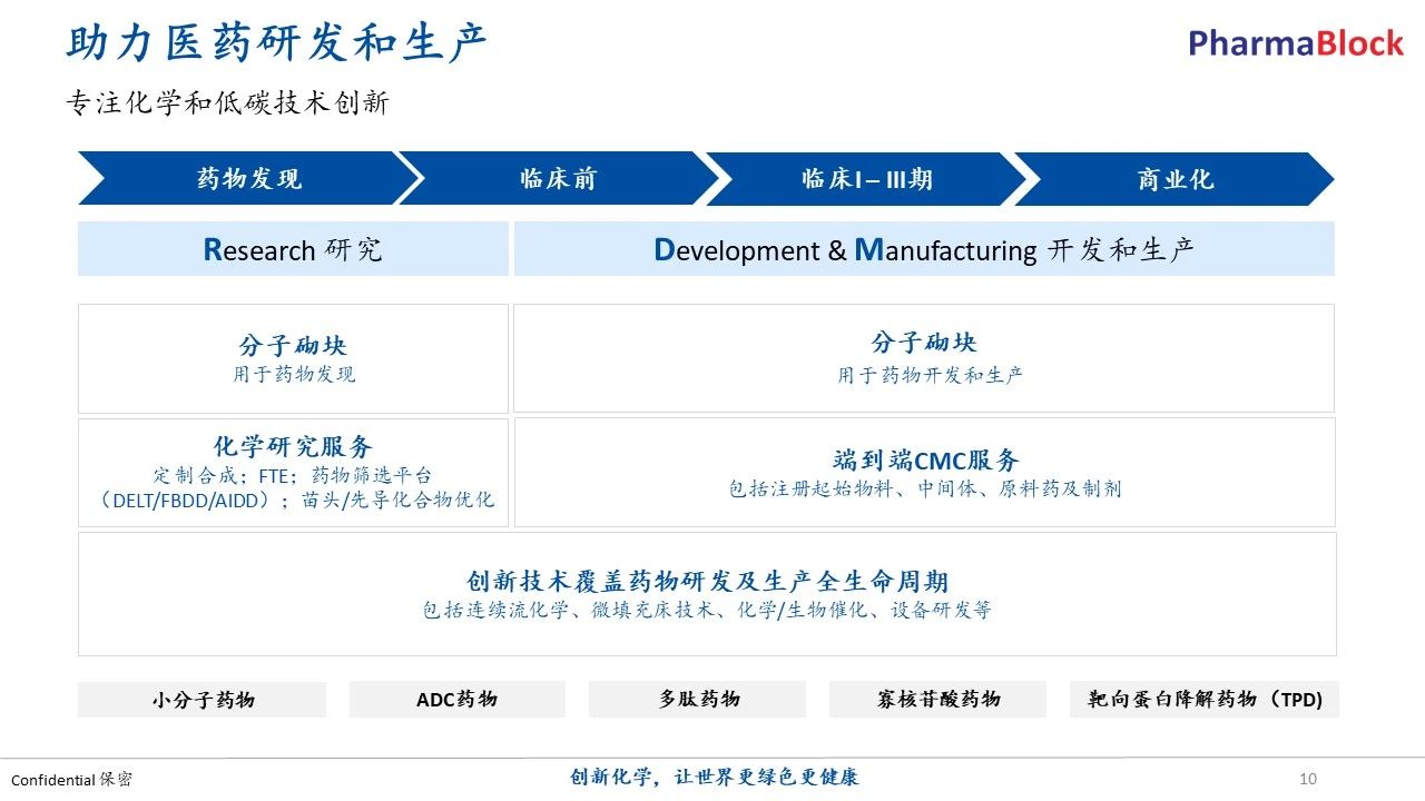 在ADC药物领域,依托分子砌块优势打造了覆盖化学部分全流程的服务体系,不仅持续丰富linker-payload中间体库,还开发出有专利空间的改造型payload,2024年还完成首个ADC linker-payload的IND注册申报,更实现了创新linker的数十公斤级交付。