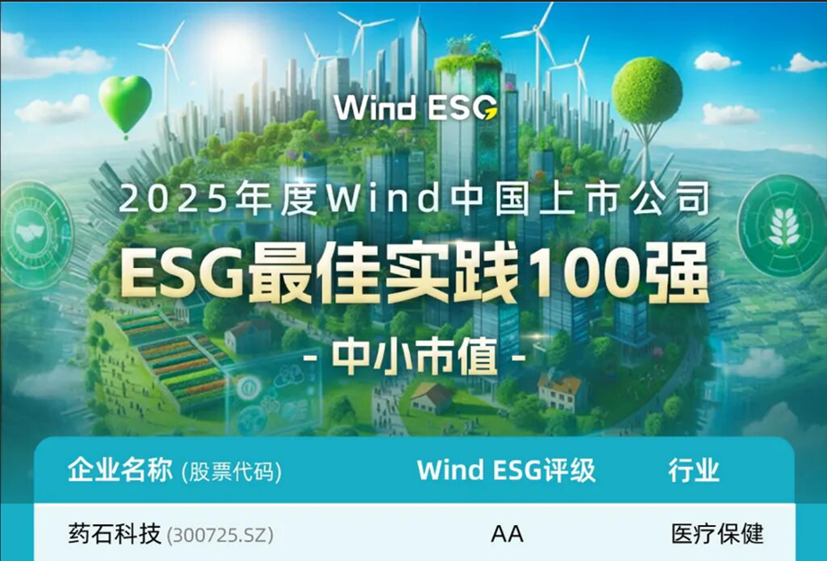 近日,2025年度Wind中国上市公司ESG最佳实践100强榜单(中小市值)正式发布,作为资本市场ESG 领域的权威评选,该榜单基于全部A股及港股最新Wind ESG评级,聚焦企业战略落地性、数据真实性与行业适配性,甄选出各领域ESG表现佼佼者。南京药石科技股份有限公司(股票代码:300725.SZ)凭借在环境、社会与治理维度的系统性突破成功入围,彰显其在可持续发展领域的标杆地位。